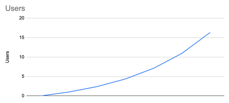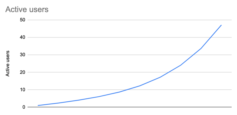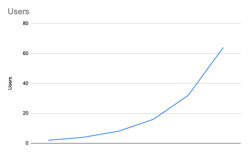 | New users | 1 | =B3*2 | 4 | 8 | 16 | 32 | 64 | 128 |